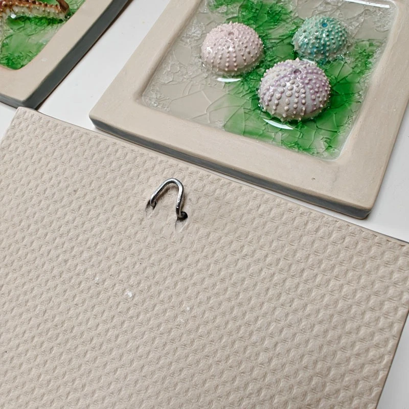 The tiles allow for either method to be used, as they have built-in picture hooks for hanging, as well as a textured back, if you prefer to adhere them to the wall.